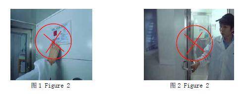 4.2.1進入風淋室前需看清里面是否有人(風淋系統工作時,不能用力使勁去推拉門,更不能強制性地將門打開,否則電鎖會被損壞)<如圖5>。