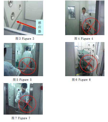 We need to see whether there have people before entering Air Shower(shower system, can not be forced to push and pull the door hard, but not mandatory open the door, or electric lock will be damaged) <Figure 5>