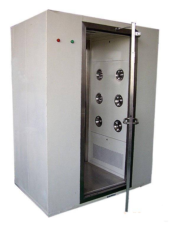 另外,供應商所說的風速通常是指噴嘴出口處的風速,而在人體或貨物表面的風速又要降低許多。因此,對新的風淋室,其初始風速不應低于25 m/s,最好能超過28mls。