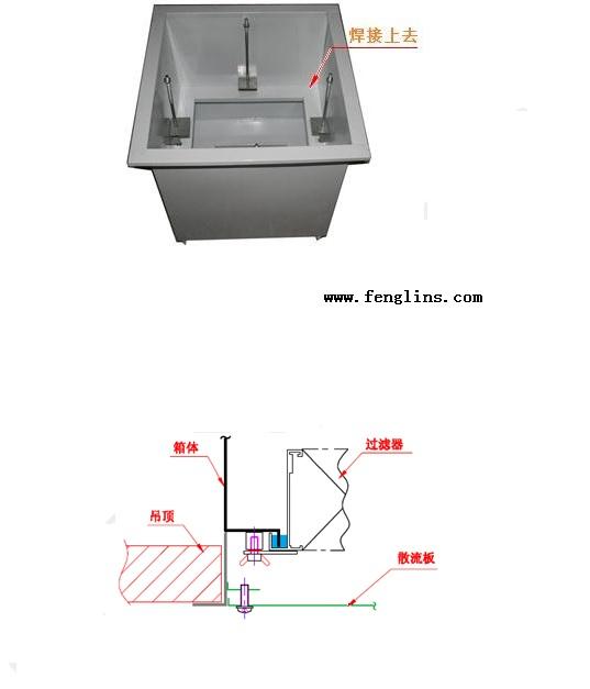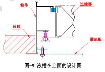 另外過濾器液槽位置的不同,也還是稍有一些差別。圖-3 所示的是液槽在高效過濾器下方的設(shè)計圖,液槽在高效上方的送風口設(shè)計見圖-9 所示。