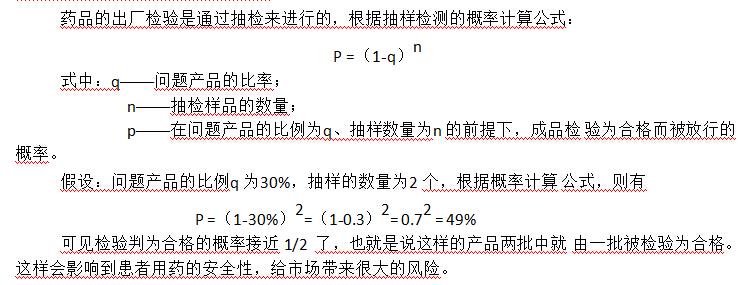 藥品的出廠檢驗是通過抽檢來進行的,根據(jù)抽樣檢測的概率計算公式: